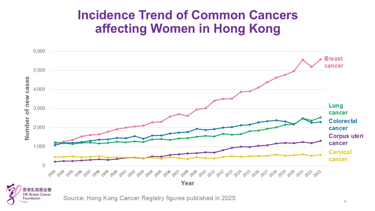 - Breast cancer has become the most common cancer affecting women in Hong Kong since 1994