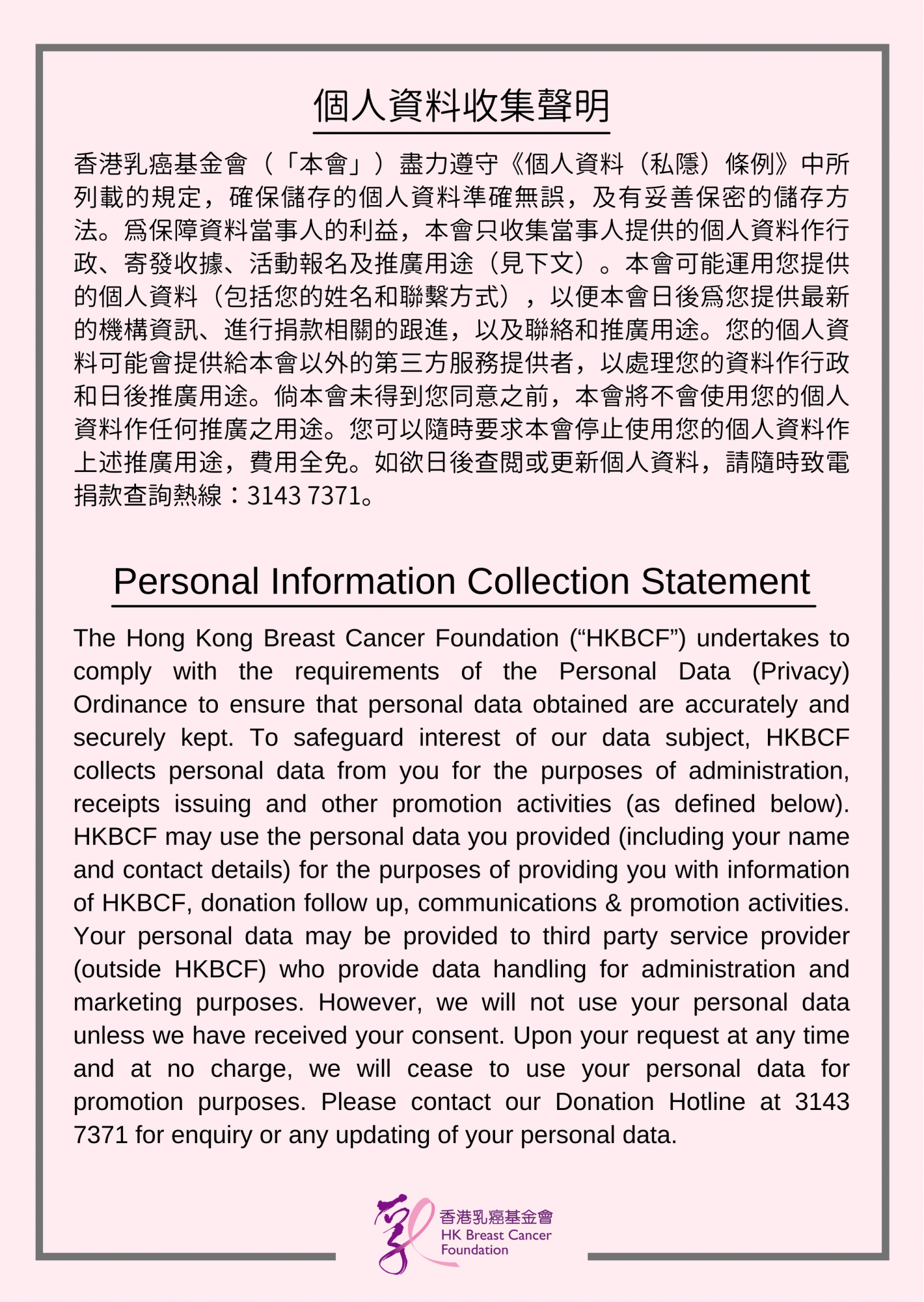 For tax deductible receipt, please take a screenshot of donation record along with the donors' name, contact numbers and email to prc@hkbcf.org. Please also provide postal address if hard copy is required. |
