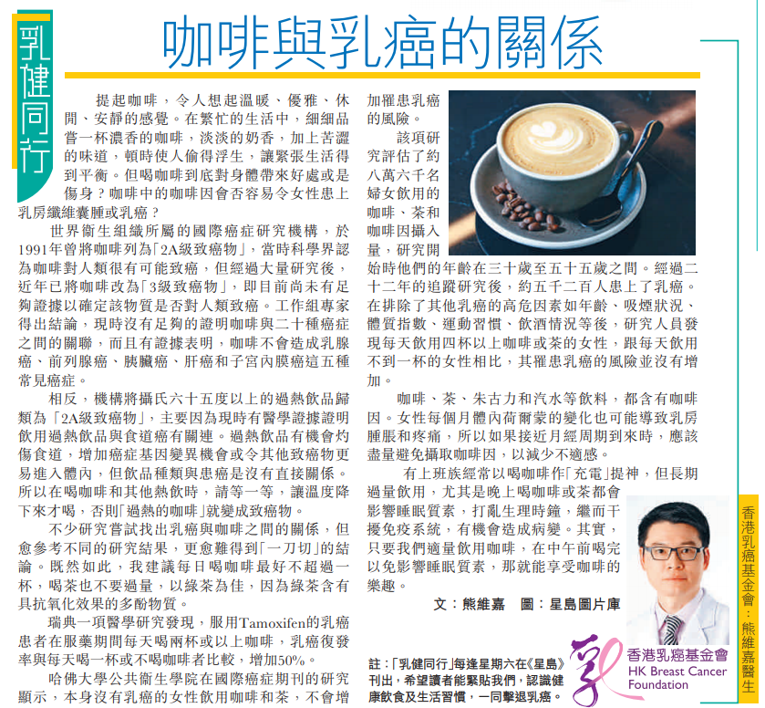 咖啡與乳癌的關係 (2019-11-23)