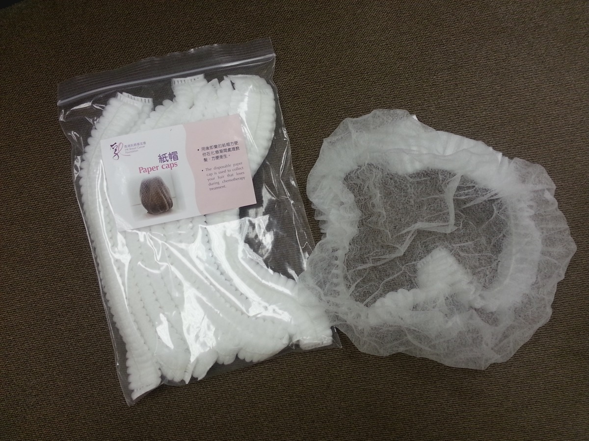 香港乳癌基金會為乳癌患者準備化療專用包,內含十頂柔軟的紙帽(見圖)。睡覺時戴上,掉落的頭髮便會收納其中,翌日清晨只需將紙帽丟棄即可。如欲了解基金會患者支援中心的服務,可致電25256033或25973251。