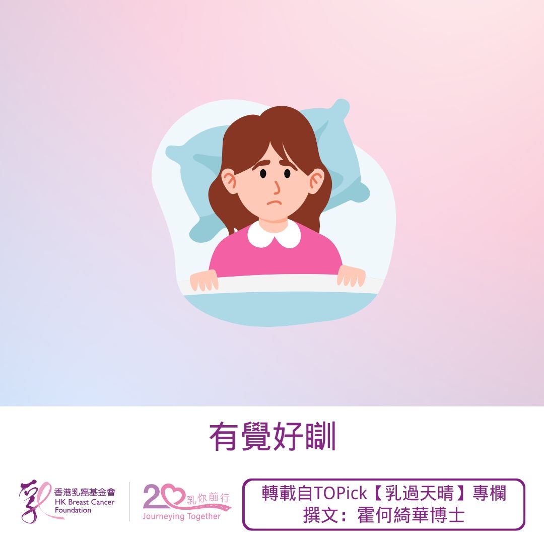 Molly的睡眠質素一直欠佳,經常做夢。她渴望能「睡到自然醒」、「一覺到天亮」,卻因家庭責任而感到喘不過氣。兩年前,她確診第一期乳癌,經過手術及電療後已康復,本以為生命重新展開,但治療過後日常依舊,她心情難免低落。為了尋找理解與支持,她加入了香港乳癌基金會患者支援中心的小組分享,希望能遇到同路人,互相扶持及鼓勵。