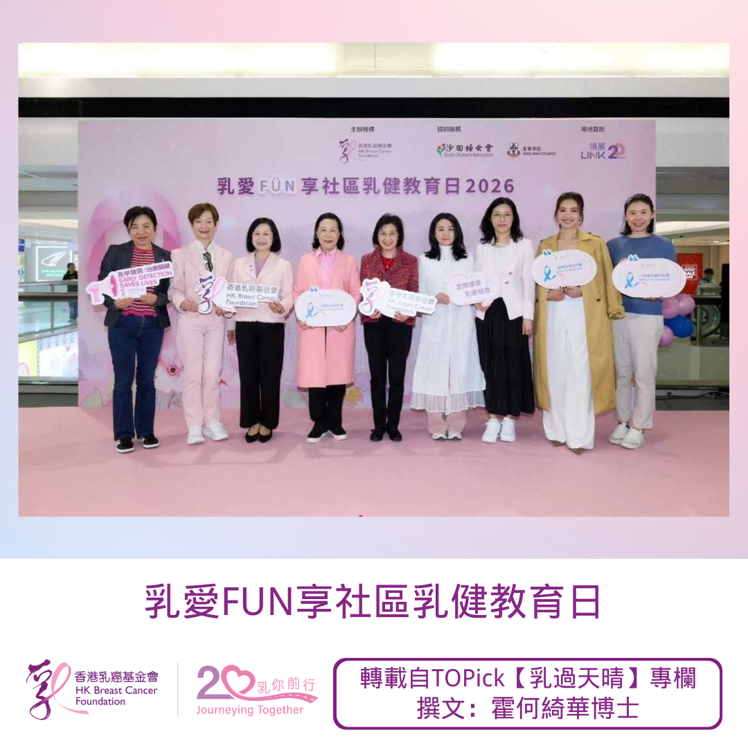 基金會多年來努力不懈走進社區,透過舉辦不同活動和乳健講座,向各階層婦女宣揚定期乳健檢查的重要性,更透過真實故事,讓公眾了解乳癌及淋巴水腫的影響。這份社區力量,正是減低乳癌威脅的重要一步。