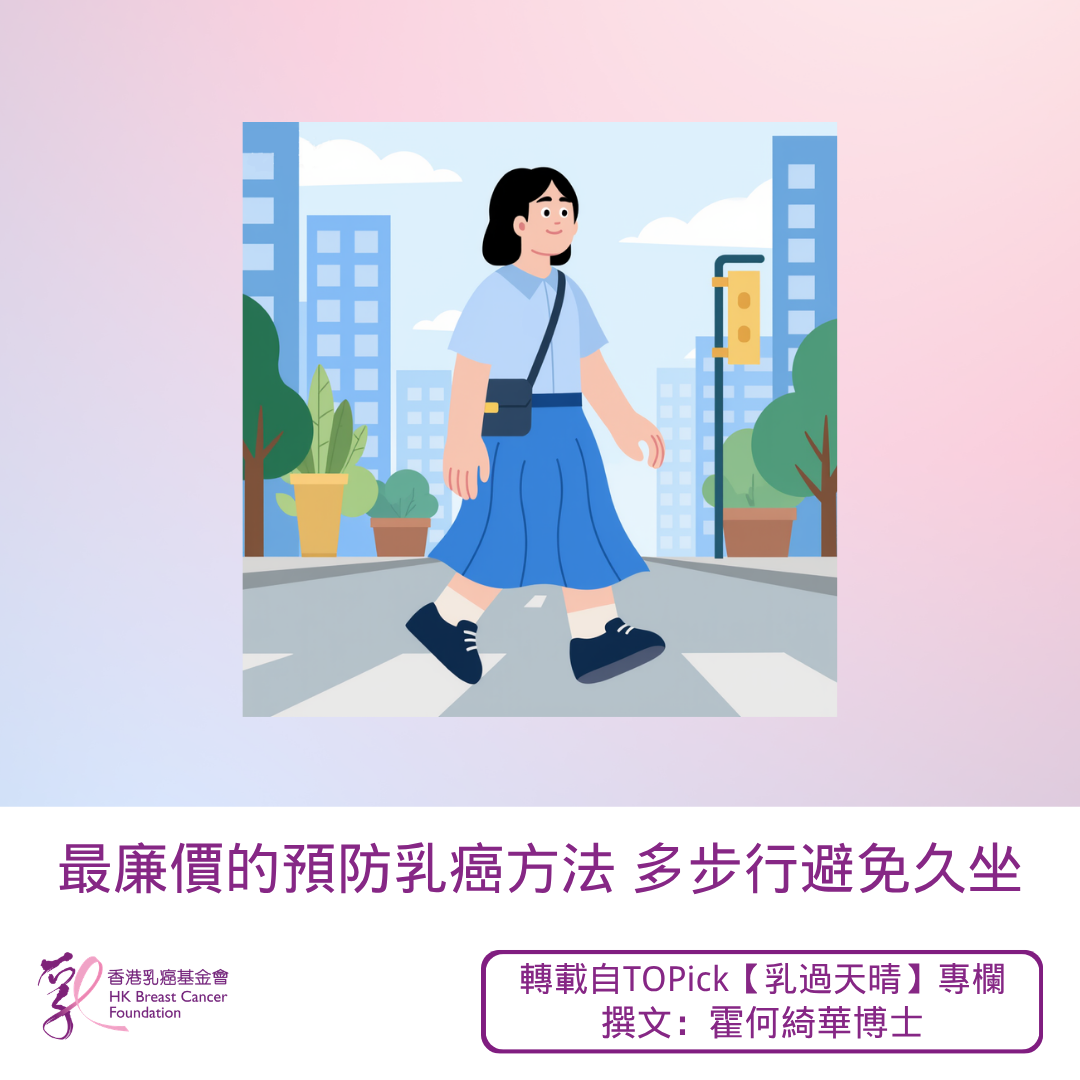 最廉價的預防乳癌方法 多步行避免久坐 (2026-4-16)